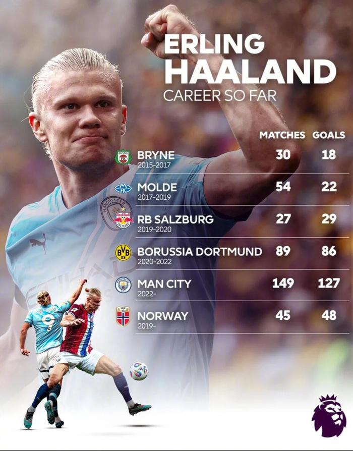 英超官号发布推文称,埃尔林·哈兰德的惊人进球纪录!他在周二对阵摩尔多瓦的比赛中独中五元,帮助挪威11-1大胜😅